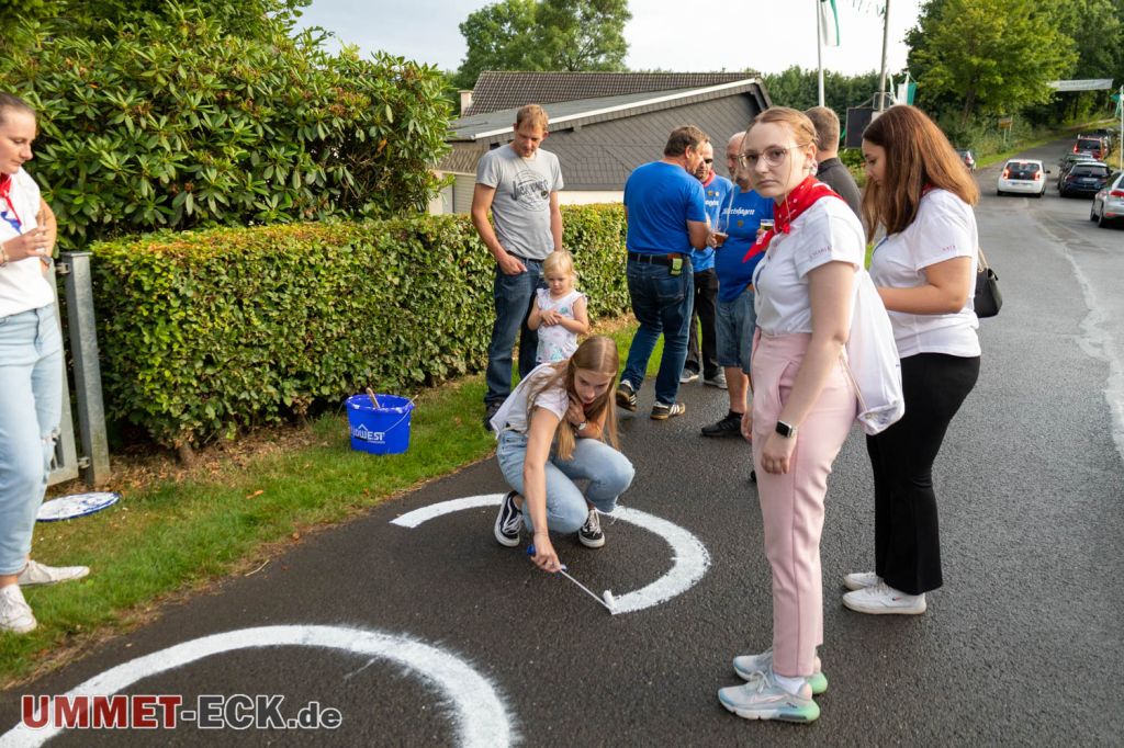 Vorschützenfest der Osterbauernschaft in Willertshagen - In gewohnt herausragender Qualität lackierten die Ehrendamen die Antretemarkierungen auf den Asphalt. • © ummet-eck.de / christian schön