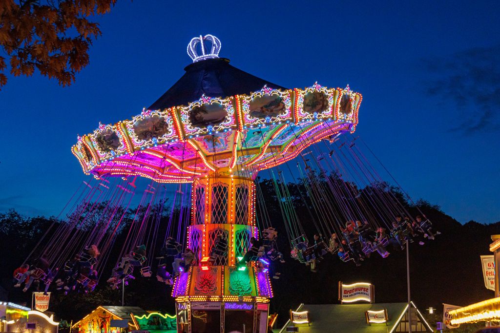 Aus 1988 stammt der Kettenflieger des Schaustellers Wendler aus Unna. Hier gesehen in Werne 2022.