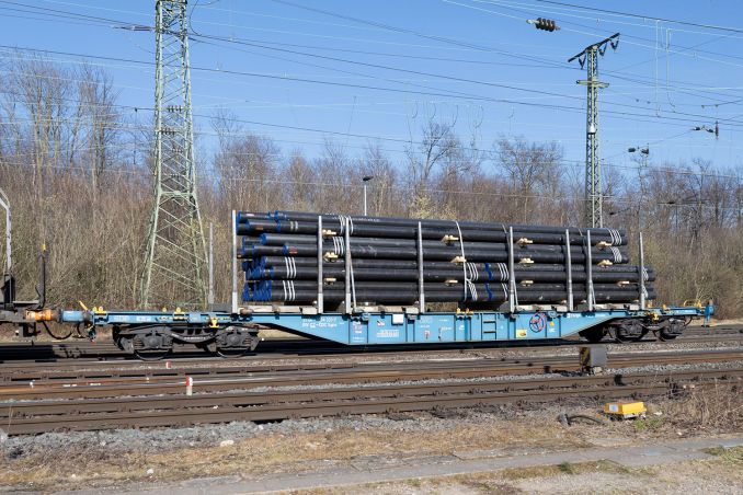 UIC-Nr: 31 54 4564 331-7 CZ-CDC: Am 11.3. fährt dieser tschechische Sgns beladen mit Röhren am Güterbahnhof Köln Gremberg vorbei.