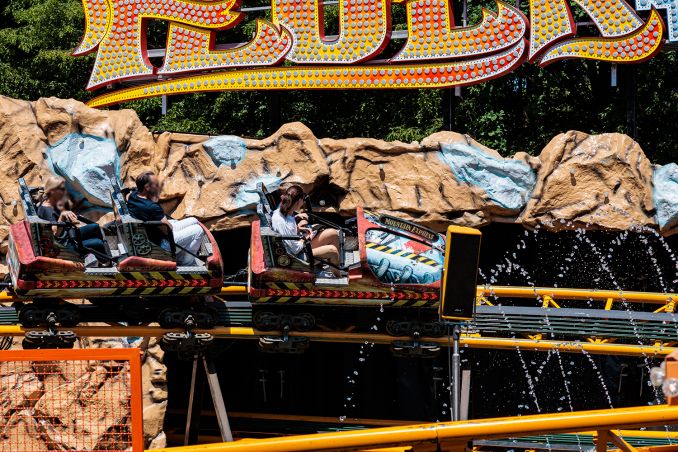 Die Fahrt geht über 280 Meter Schienen und ist bis 12 Meter hoch. Die Standfläche nimmt 42x22 Meter in Anspruch.