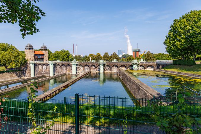 Die alte Schachtschleuse Henrichenburg liegt in Waltrop im Ruhrgebiet. Das Abstiegsbauwerk ist Teil des Schleusenparks Waltrop.