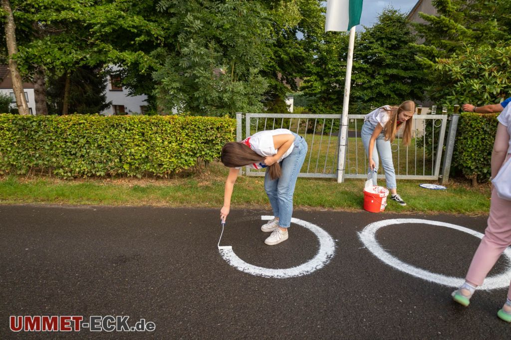 In gewohnt herausragender Qualität lackierten die Ehrendamen die Antretemarkierungen auf den Asphalt.